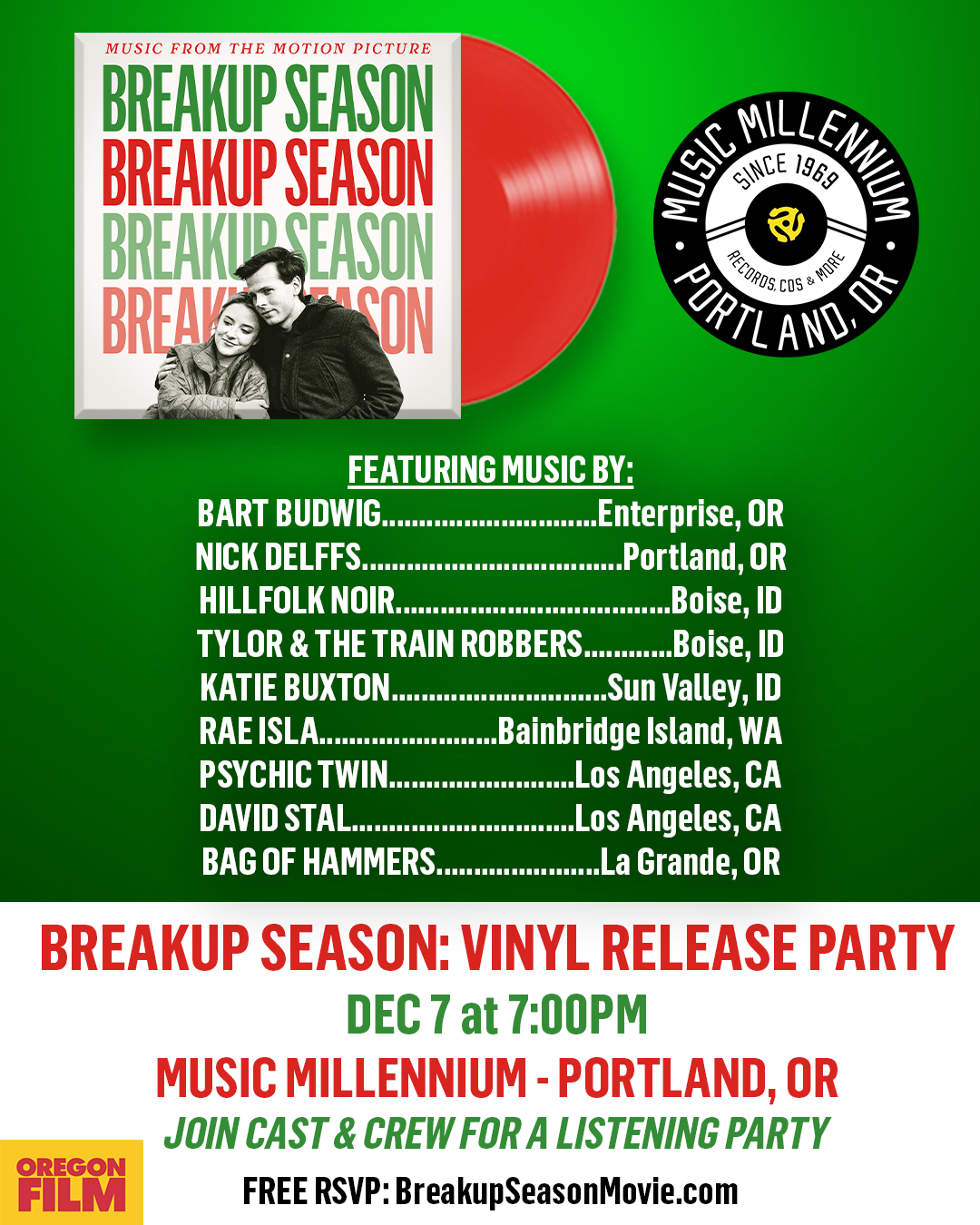 Breakup Season has completed its festival & theatrical run! You can watch the film at home.A limited theatrical re-release is happening in December 2025 to celebrate the holiday season and celebrate our vinyl soundtrack release.